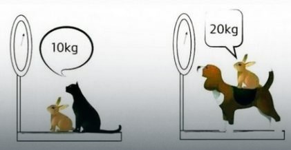 Ako uzmemo da su težine zeca, mačke i kučeta (C – mačka, B – zec, D – pas):